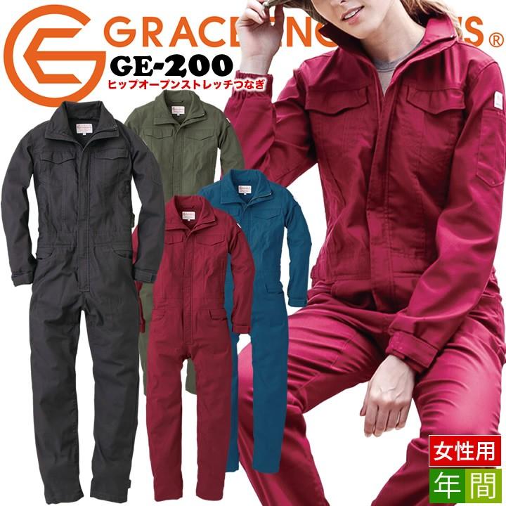 女性用 長袖つなぎ ヒップオープン Ge 0 グレースエンジニアーズ オールシーズン レディース 作業服 作業着 ストレッチ ツナギ エスケープロダクト 作業服の専門店だるま商店 通販 Paypayモール